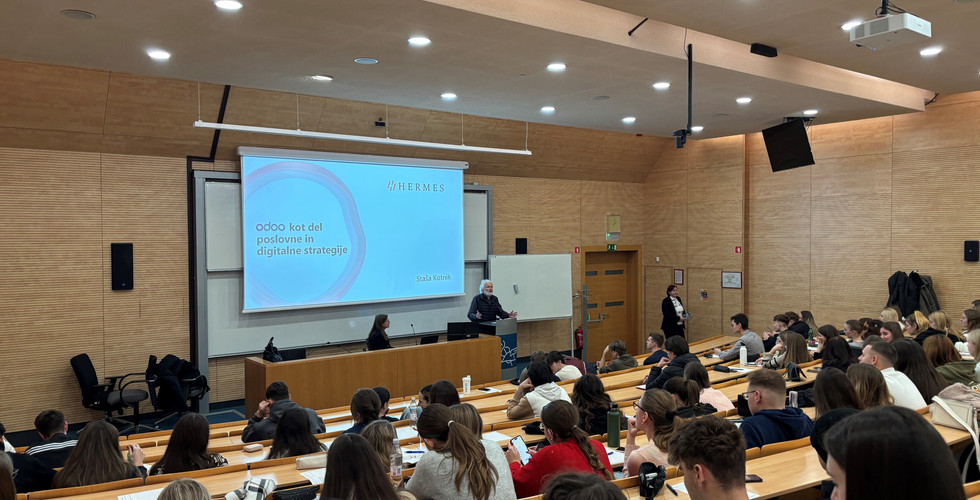 V ponedeljek, 9. decembra, je v okviru predmeta Poslovna informatika (1.letnik UN) potekalo gostujoče predavanje na temo “Odoo kot del poslovne in digitalne strategije”, ki ga je organizirala Katedra za e-poslovanje v sodelovanju s podjetjem Hermes d.o.o. Podjetje Hermes d.o.o. svojim strankam ponuja široko paleto poslovnih rešitev, od leta 2019 pa imajo v svoji ponudbi tudi vključeno Odoo platformo. Ker so ekipa, ki spretno in kreativno rešujejo uporabniške izzive, jim danes zaupa že več kot 500 podjetij.